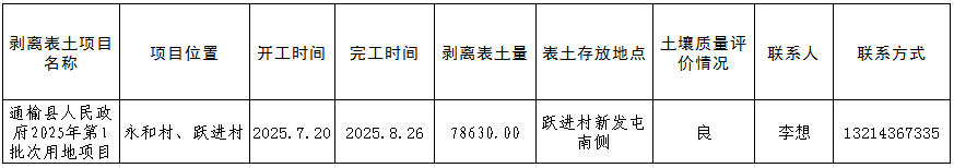 通榆县人民政府2025年第1批次用地项目
