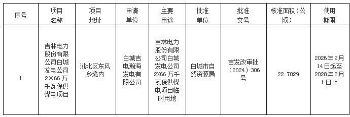 根据《自然资源部关于规范临时用地管理的通知》(自然资规〔2021〕2号、《自然资源部办公厅关于临时用地信息填报有关工作的通知》(自然资办函〔2022〕285号)等相关文件精神,以下临时用地项目已经白城市自然资源局批准,现对结果进行公示。